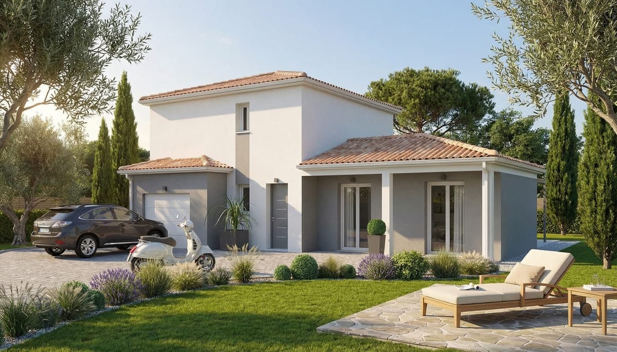 Avec une architecture typique des maisons du sud de la France, la Bergerac est une superbe maison contemporaine et design. Son garage intégré peut revêtir un toit traditionnel ou un toit plat, conférant modernité et originalité,